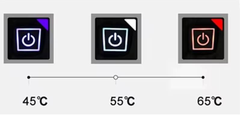Printr-un buton exterior iluminat, poți schimba între 3 trepte de încălzire: